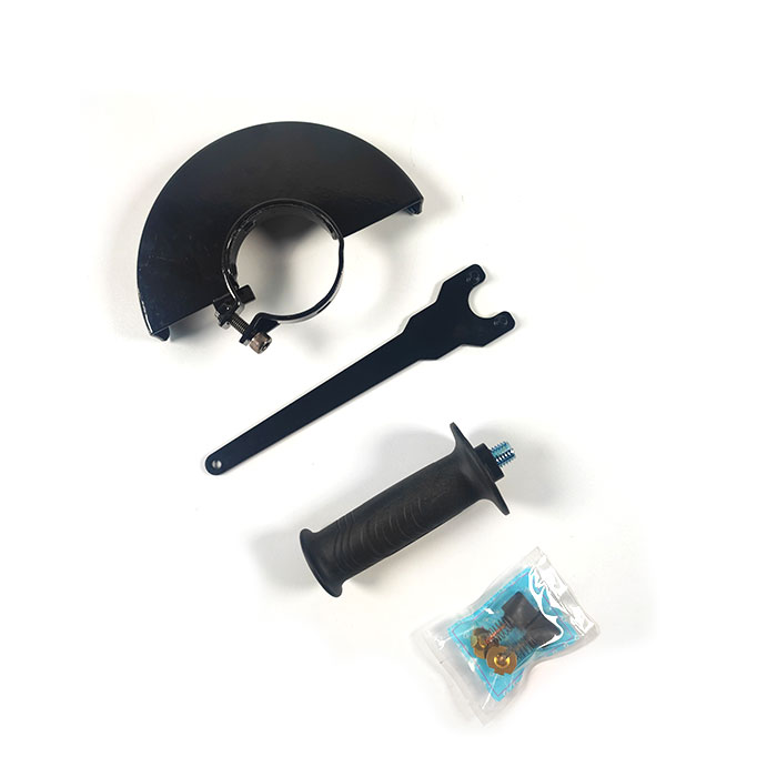 اقلام همراه آچار تعویض صفحه،گارد محافظ،دسته کمکی،یک جفت زغال یدک