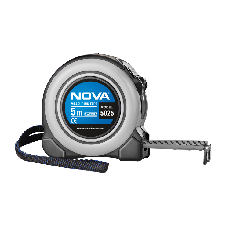 از جمله متر های تولید شده توسط شرکت نووا میتوان متر 5 متری مدل 5025 را نام برد که اگرچه از ظاهری ساده برخوردار است ، اما کاربرد فراوانی در صنایع مختلف دارد و جهت اندازه گیری سطوح مختلفی از جمله دیوار ، ابعاد چوب ، پارچه و … بکار می رود.