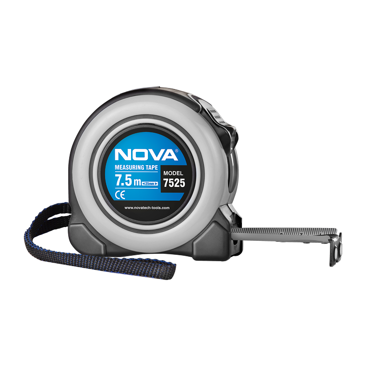 متر 7.5 متری نووا مدل 7525 با طراحی حرفه‌ای و ویژگی‌های منحصر به فرد، یکی از ابزارهای کاربردی و ضروری در صنایع مختلف مانند نجاری، ساختمان‌سازی و تاسیسات است. این متر از بدنه‌ای مقاوم از جنس پلاستیک ABS ساخته شده که در برابر ضربه و فشار بسیار مقاوم می باشد و آن را به یک محصول مناسب جهت استفاده در محیط‌ های سخت و صنعتی تبدیل کرده است.